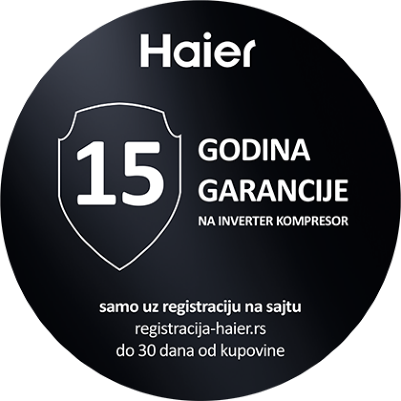 Kupovinom Haier proizvoda u periodu od 01.09.2025. - 31.03.2026. ostvarujete pravo na produženu garanciju na Haier aparate, inverter motore, inverter kompresore frižidera i direct motion motore veš mašina, registracijom na linku, najkasnije do 30 dana od datuma kupovine
