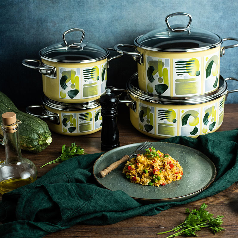 Emajlirano posuđe je dugotrajno, otporno na hemijske uticaje i habanje, jednostavno za održavanje. Može se koristiti na svim grejnim telima, uključujući i indukciju.